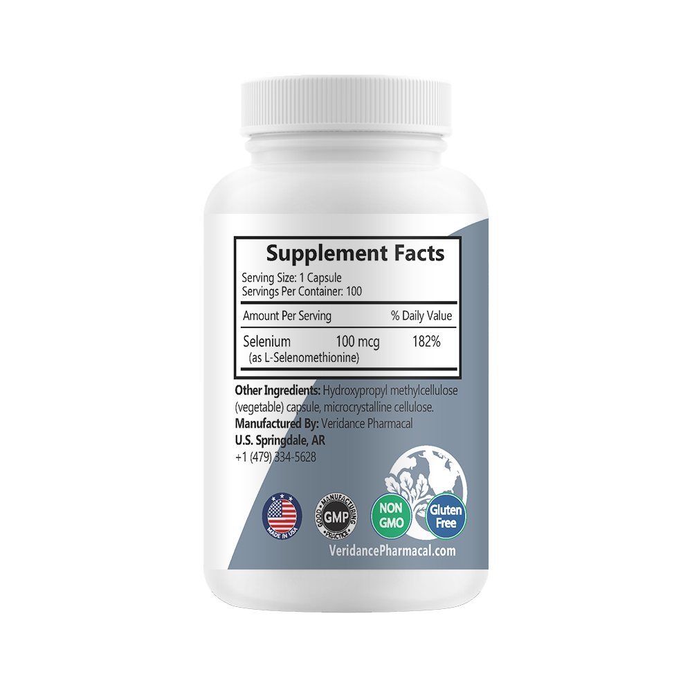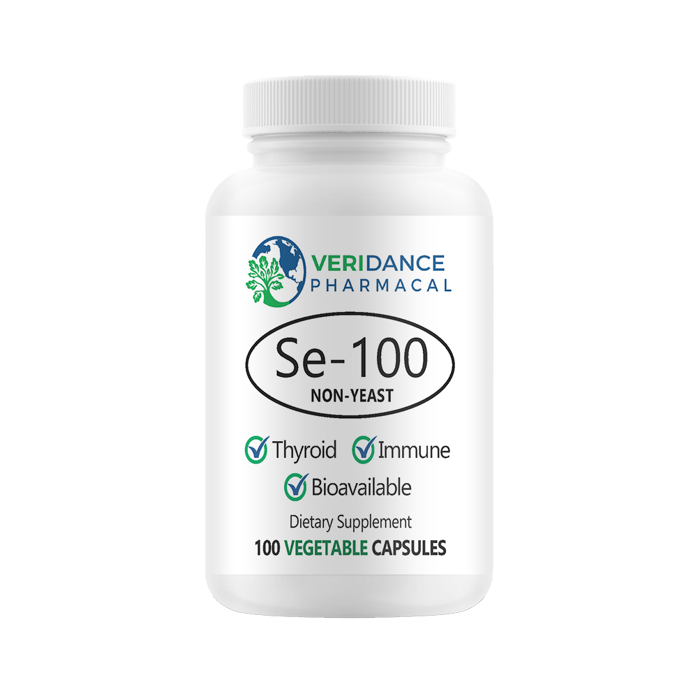 Selenium is an essential trace mineral that contributes to overall health by supporting enzymes that regulate thyroid hormone metabolism and antioxidant enzymes that protect against oxidative stress. Research suggests that supplementing with selenium can have positive effects on immune, cardiovascular, and thyroid health. Se-100 supplies selenium in the form of l-selenomethionine, a highly bioavailable amino acid found in natural food sources, making it a superior choice compared to commonly used inorganic salts like sodium selenite and sodium selenate.